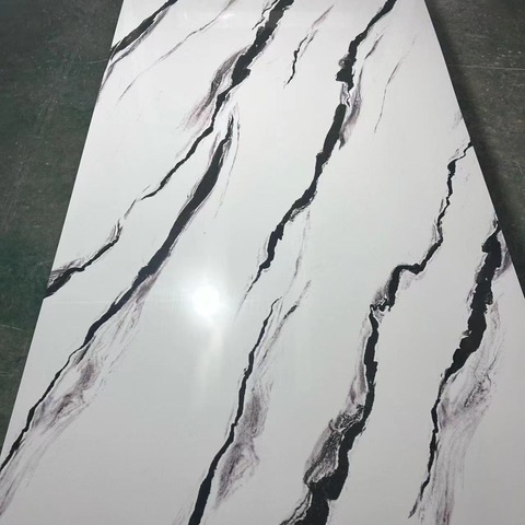 แผ่นผนังพีวีซีมันวาวสูง1200X2400Mm ทันสมัยแผ่นหินอ่อนกันน้ำกันไฟโพลีไวนิลคลอไรด์สำหรับการออกแบบกราฟิกในร่ม
